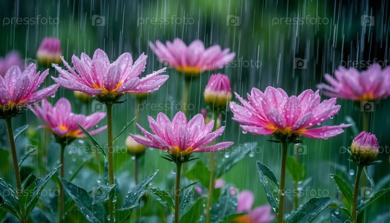 Цветы под дождем, 3D-рендеринг