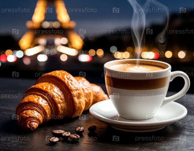Круасан и кофе на фоне вечера в Париже