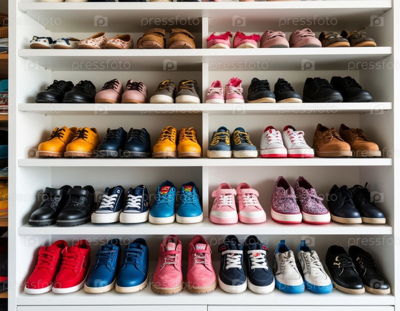 Стойте с детской обувью разных размеров