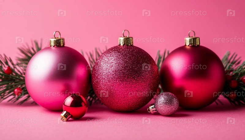 Рождественские шары на розовом фоне