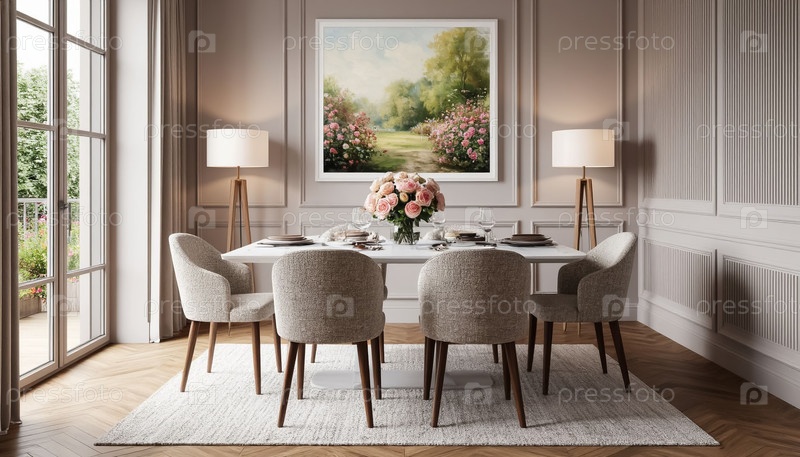 Интерьер столовой в квартирах в светлых цветах. комфорт и чистота. генерация ИИ