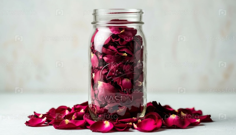 Сушеные лепестки роз в стеклянной банке