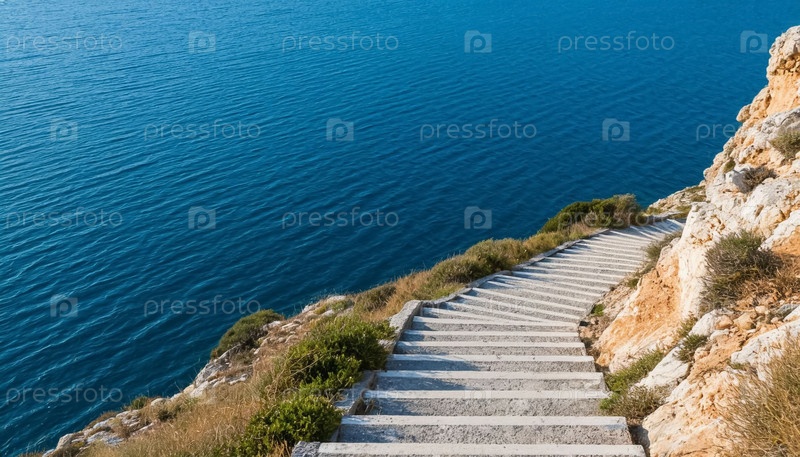 Морской пейзаж - естественные ступени в скале спускаются к морю