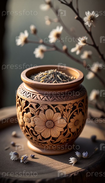 Деревянный горшок с цветочным чаем органический блеск