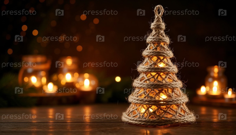 Новогодняя елка из конопляной веревки - экологически чистый декор на темном фоне