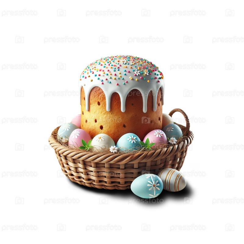 Easter Uclich в корзине и окрашенные яйца на прозрачном фоне - иллюстрация, созданная AI