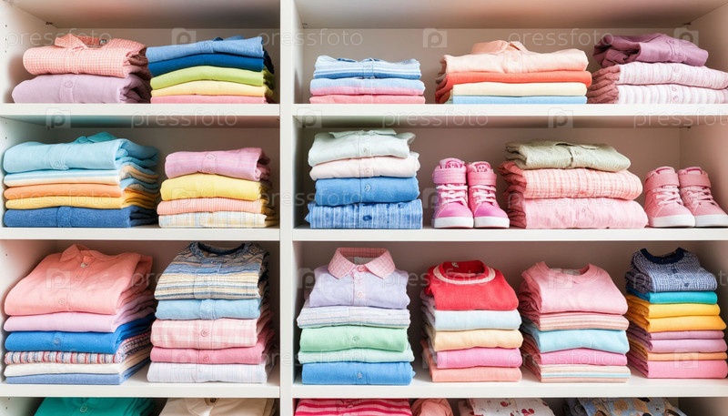 Детская одежда и подгузники складываются в белую стойку