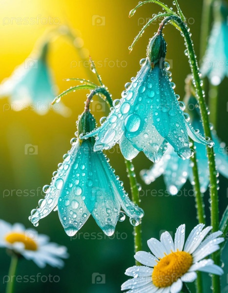 Нежные светящиеся дикие цветы колокольчики после дождя
