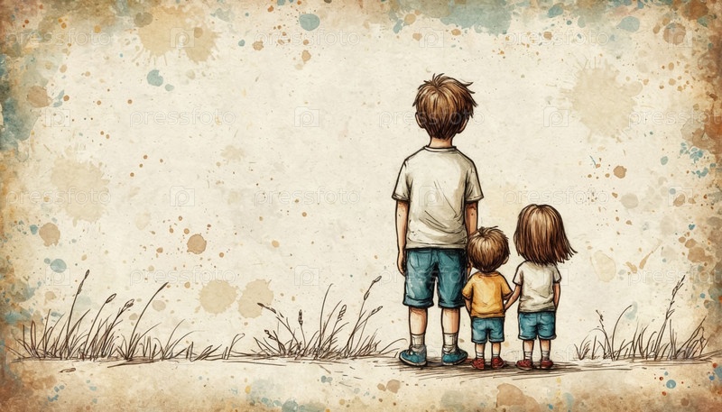 Ручно нарисованные дети смотрят на винтажную текстуру сзади