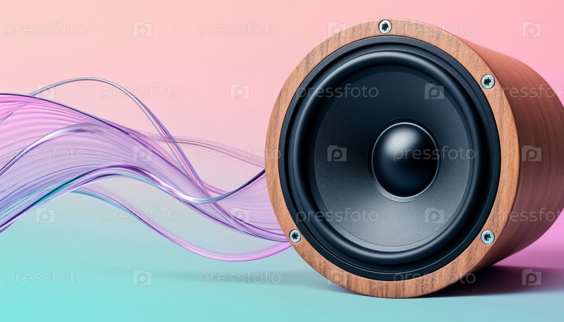 Музыкальный фон, покрывающийся динамиком и прозрачными звуковыми волнами в пастельных тонах