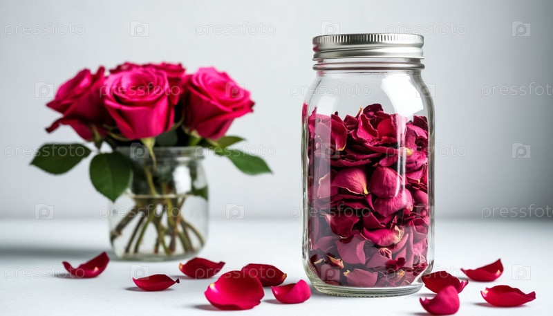 Сушеные лепестки роз в стеклянной банке