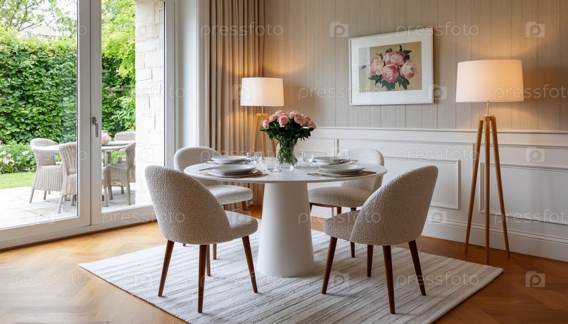 Интерьер столовой в квартирах в светлых цветах. комфорт и чистота. генерация ИИ