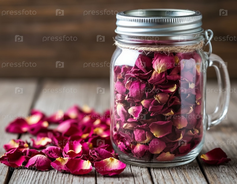 Сушеные лепестки роз в стеклянной банке