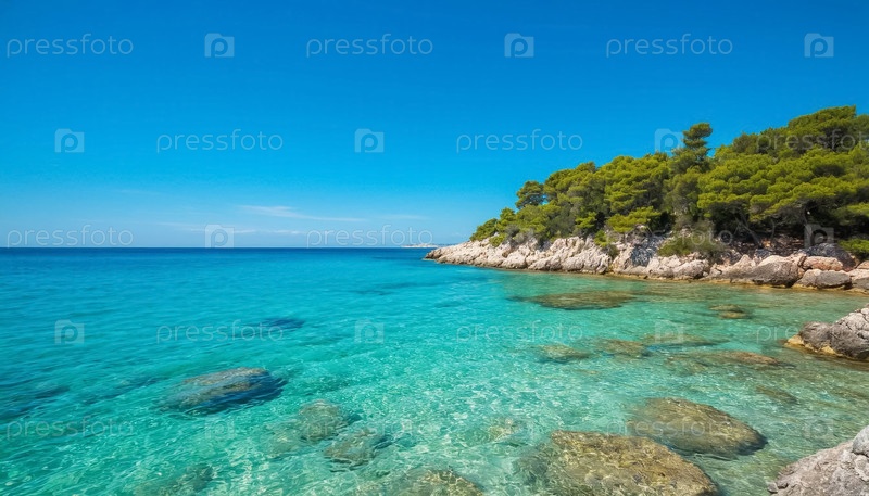 Морской пейзаж, чистая вода и скалы
