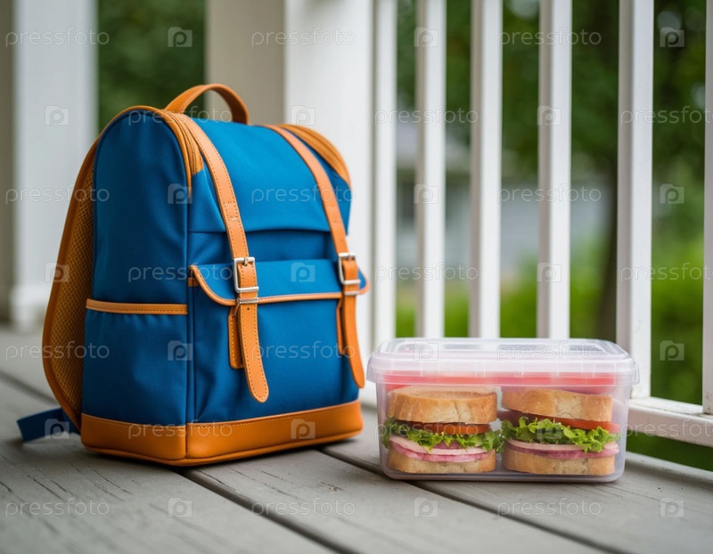 Школьная сумка и бутерброды в коробке