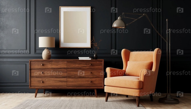 Интерьер комнаты в темном ретро-стиле, созданный AI