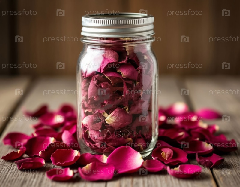 Сушеные лепестки роз в стеклянной банке
