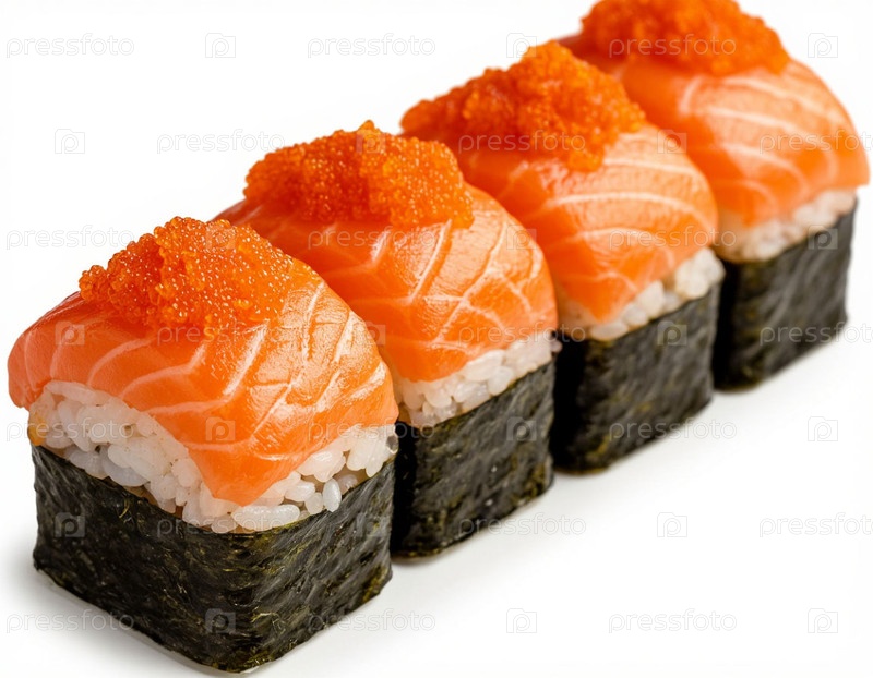 Суши на белом фоне, японская еда