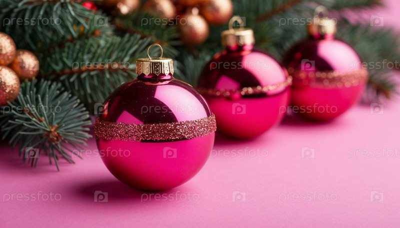 Рождественские шары на розовом фоне