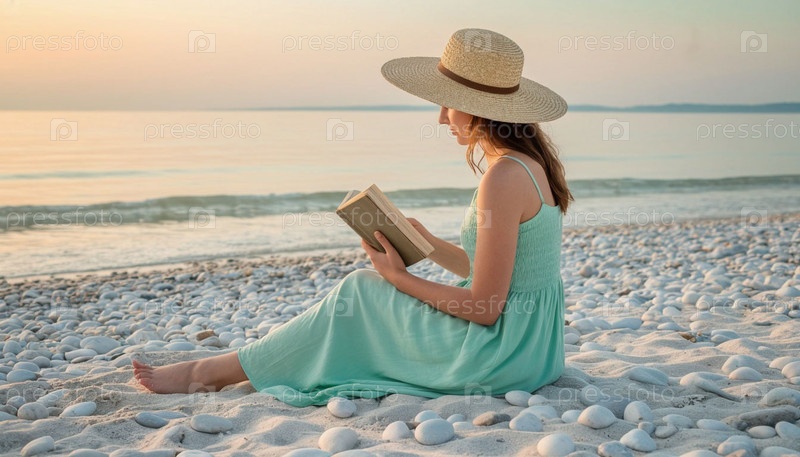 Девушка в шляпе у моря с книгой