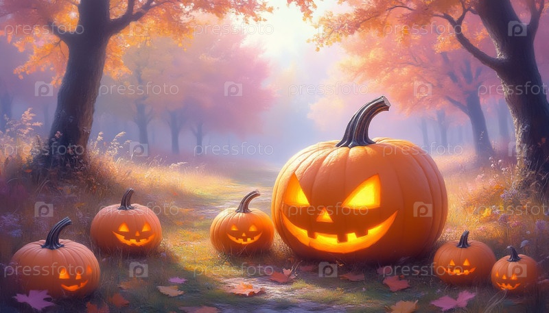 Странные плавающие тыквы из пастельного пейзажа мечты