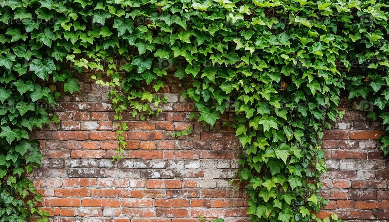 Кирпичная стена, покрытая плющом