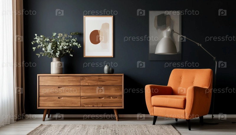 Интерьер комнаты в темном ретро-стиле, созданный AI