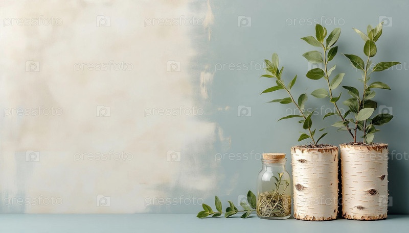 Цилиндрический корабль Birch Bark с зеленым шприцем на винтажном синем фоне