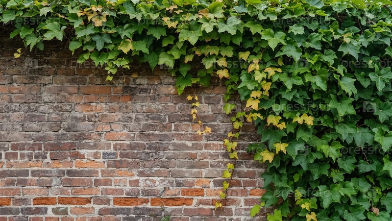 Кирпичная стена, покрытая плющом