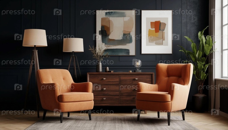 Интерьер комнаты в темном ретро-стиле, созданный AI