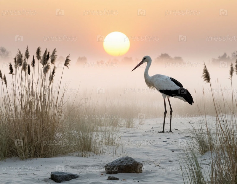 Щернок в туманное утро на поле при рассвете