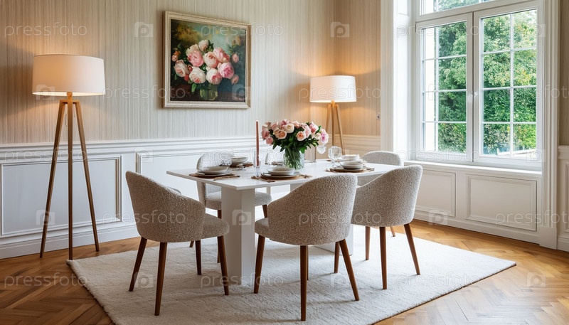 Интерьер столовой в квартирах в светлых цветах. комфорт и чистота. генерация ИИ