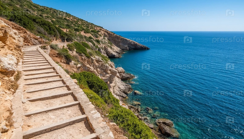 Морской пейзаж - естественные ступени в скале спускаются к морю