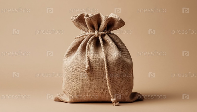 Полный мешок, привязанный к близнецу на бежевом минималистическом фоне