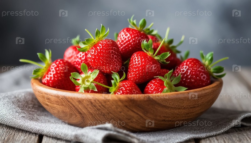 Зрелые клубники в деревянной тарелке