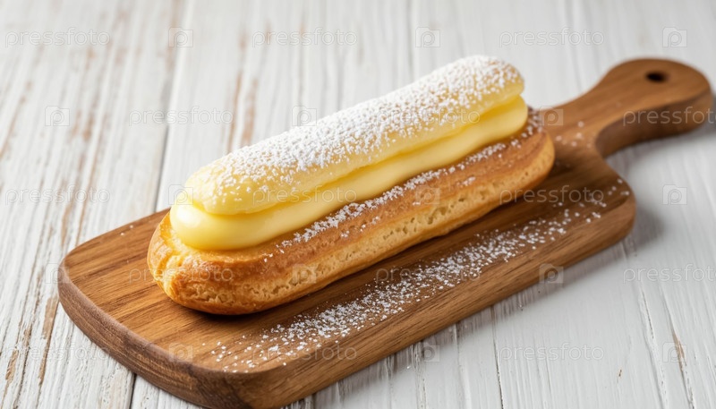 Кремный торт Eclair на деревянной стойке
