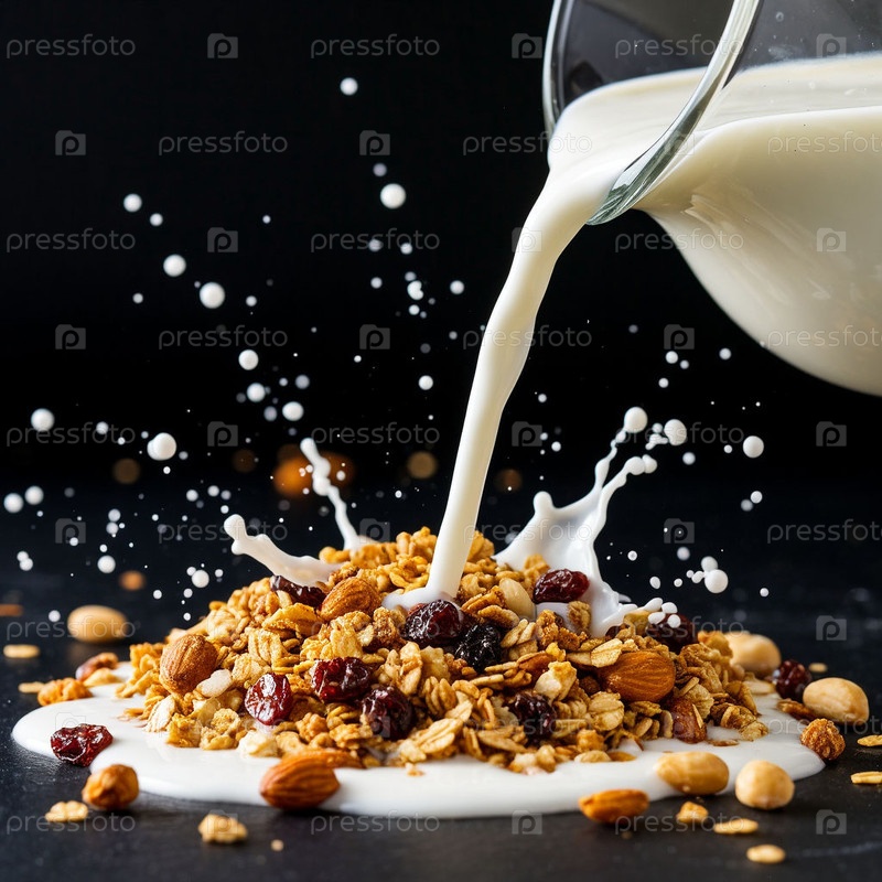 Молоко наливается в мюсли