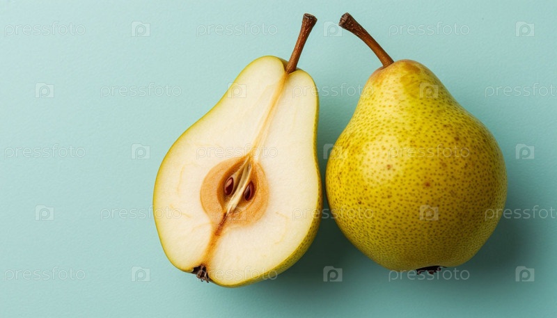 Груша на пастельно-серо-синем фоне