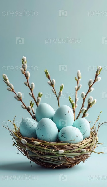 Пусси Уиллоу и яйца Минималистская пасторальная сцена