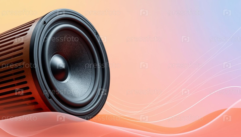 Музыкальный фон, покрывающийся динамиком и прозрачными звуковыми волнами в пастельных тонах