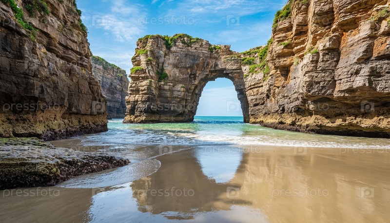 Прекрасный морской пейзаж и каменные пещеры и арки вдоль побережья