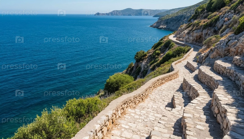 Морской пейзаж - естественные ступени в скале спускаются к морю