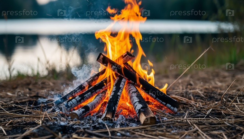 Огонь горит на берегу реки