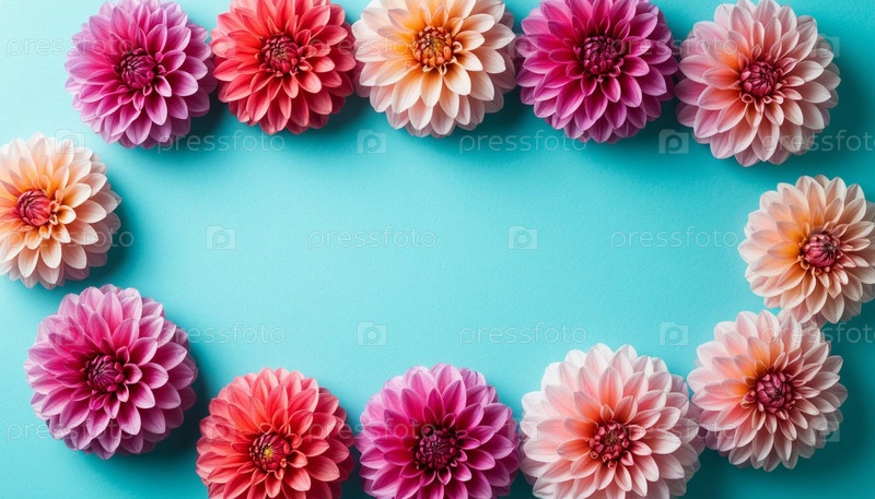 Далия на синем фоне, копировальное пространство. Сгенерированный ИИ. Человек в халате с чашкой чая в руках