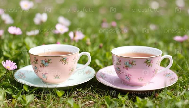 Две чашки чая на траве. генерируется ИИ