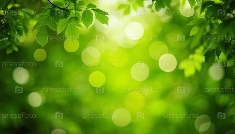 Естественный зеленый размытый фон с боке и ветвями