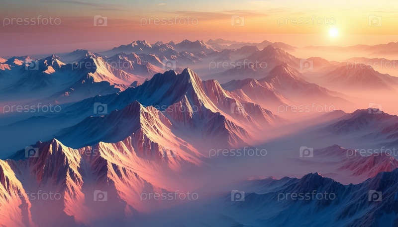 Абстрактные горы мягких пастельных оттенков в тумане