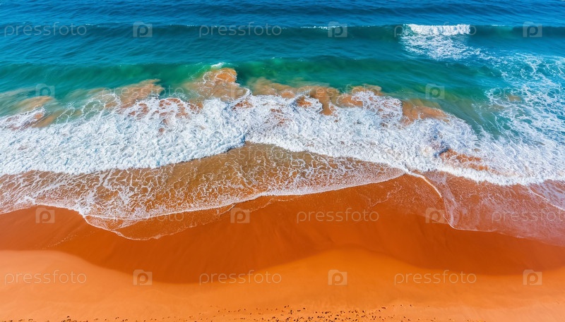 Море, волны и австралийское побережье. вид сверху на морской пейзаж. береговая линия