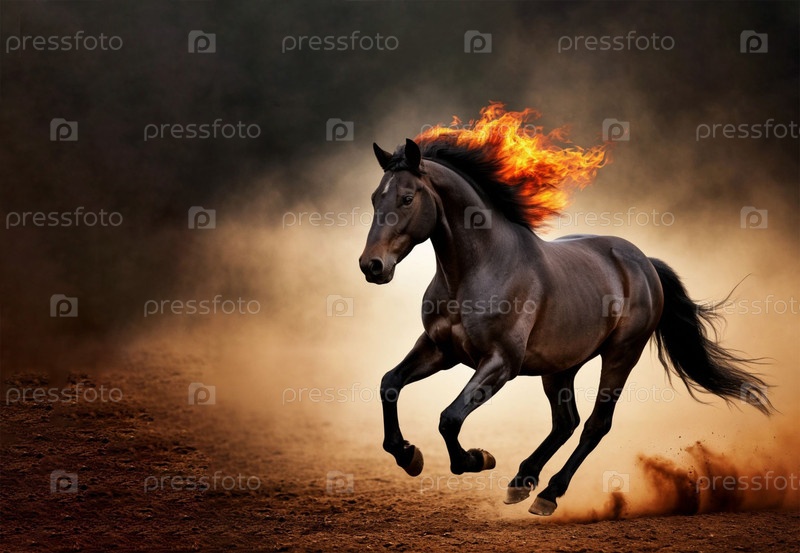 Элегантная лошадь с огненным хвостом и гривой, символ Нового года 2026