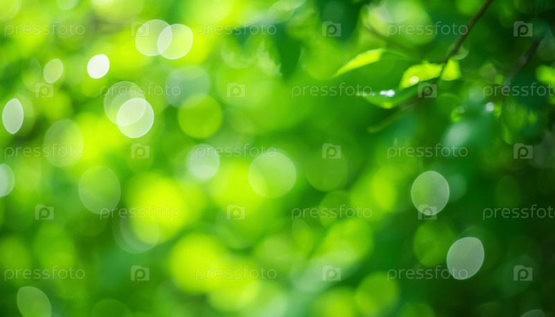 Естественный зеленый размытый фон с боке и ветвями